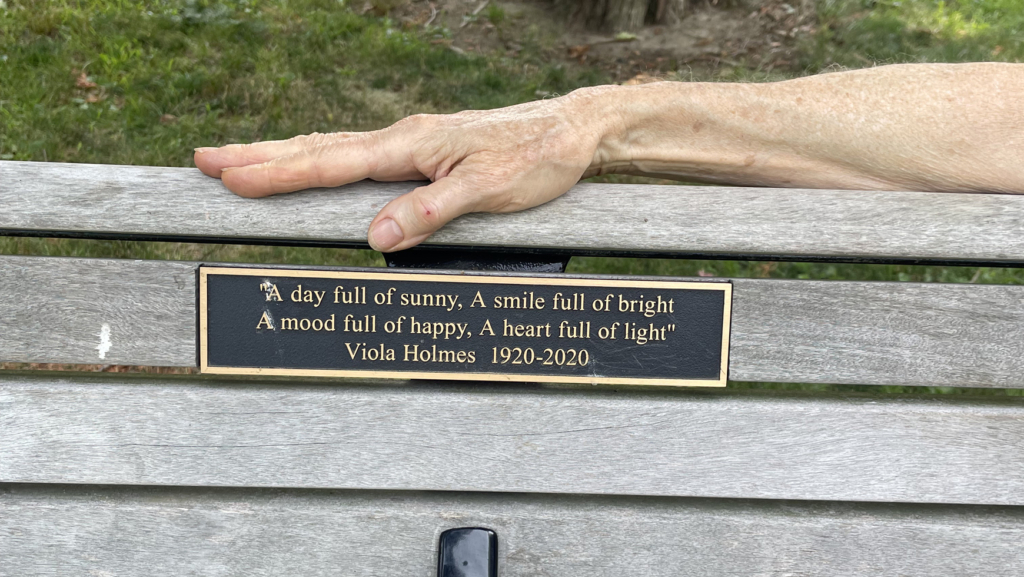 Five years ago, when she was in her one hundredth year, we said goodbye to Vivacious Vi, my mom. To honor her daily walking habit, my sisters and I chose to dedicate a park bench near my house. Finding the right words to engrave on that bench was no easy task. She had kept notebooks full of quotes, jokes, observations and even a complete list of Shakespeare’s “Troillus and Cressida” characters (no idea why, but it made us laugh out loud).